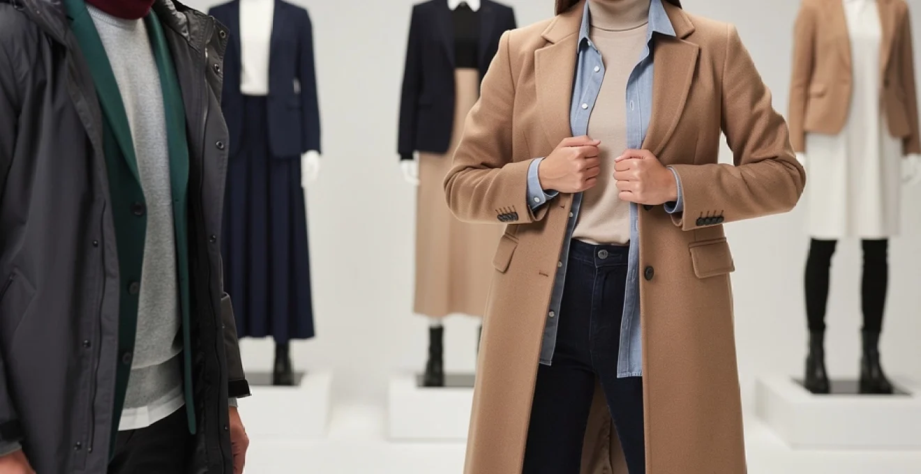 Your outer layer serves dual purposes: it must protect you from the elements whilst framing the entire composition of your outfit. Wool blends, particularly those combining wool with synthetic fibres like polyester or nylon, offer durability and weather resistance without sacrificing the natural breathability of pure wool. These blends typically maintain their shape better over time and resist pilling—that frustrating formation of small fabric balls that can make garments appear worn.